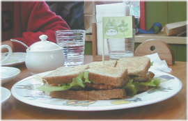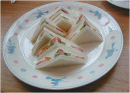 やせっぽちのカツサンド(旗とお皿はトトロ柄)950円 ちなみにやせっぽちはビーフ、太っちょのカツサンドは 豚カツ |