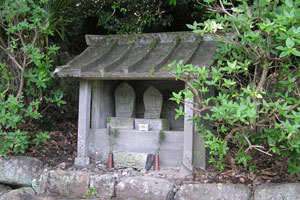 ほうろく岩の下。境内の東端、国道166号線沿いに大日如来様(左)と 馬頭観音様の祠があります。お不動様のお姿が大日如来様です。
