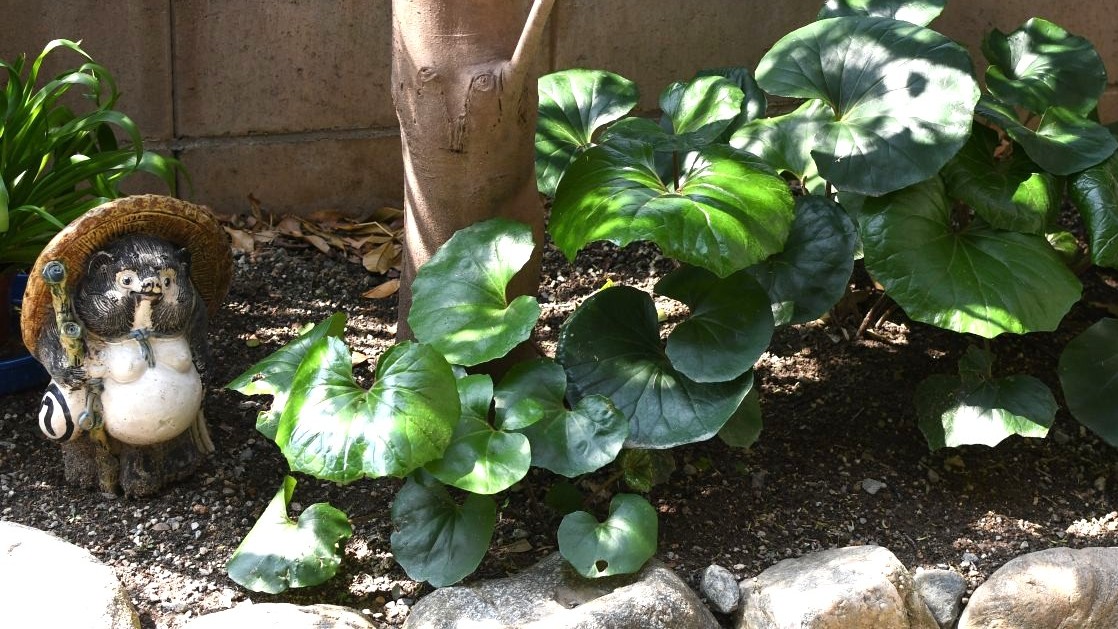 ぽかぽか陽気、ツワブキの葉が例年に増して大きく伸びています。気温や雨などの条件によってよく繁る年とそうでない年があります。春の陽を反射してつやつやと光る葉を見ると自然の美に見惚れます。(11:26)