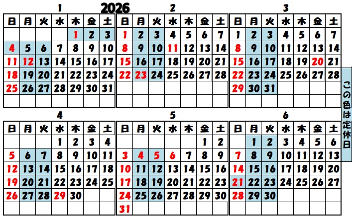 定休日 毎週 月曜日・火曜日